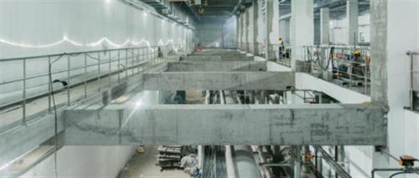 西安市第三污水處理廠并不只是簡單將地上的污水處理廠“下沉”,而是在充分考慮各類安全風險等因素后,重新統(tǒng)籌功能分區(qū),實現(xiàn)資源整合的最優(yōu)配置。項目采用分層布置形式,地下一層為操作層,為設備調(diào)控中心和人力檢修中心,地下二層為水處理構筑物和綜合管廊,污水處理廠的曝氣池、沉淀池等在這里“一應俱全”。同時,項目團隊結合施工方案對地下空間進行多維度優(yōu)化,形成立體三維布置,通過優(yōu)化工藝流程、重組單元組團、修改構筑物布局等方式,提升空間利用效率,將項目占地用地減少了三分之二。