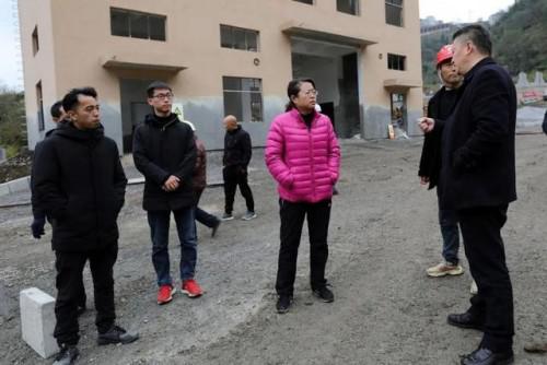 宋莉(左1)向施工方了解工程進度和推進難點