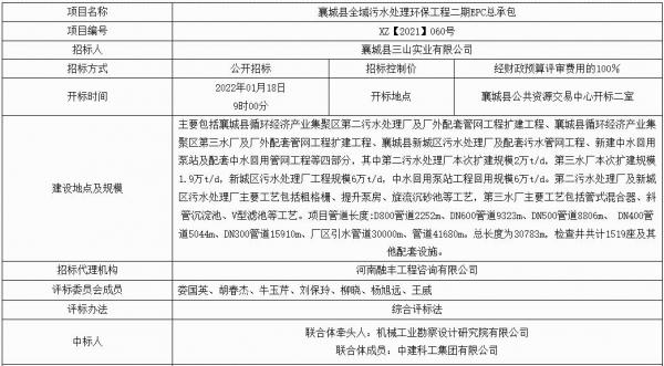 襄城縣全域污水處理環(huán)保工程二期EPC總承包(不見面開標(biāo))-結(jié)果公告-****標(biāo)段